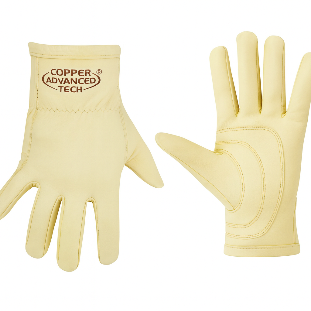Built for tough jobs, Copper Advanced Tech Work Gloves combine premium goatskin leather with advanced copper technology for unmatched durability, comfort, and performance.