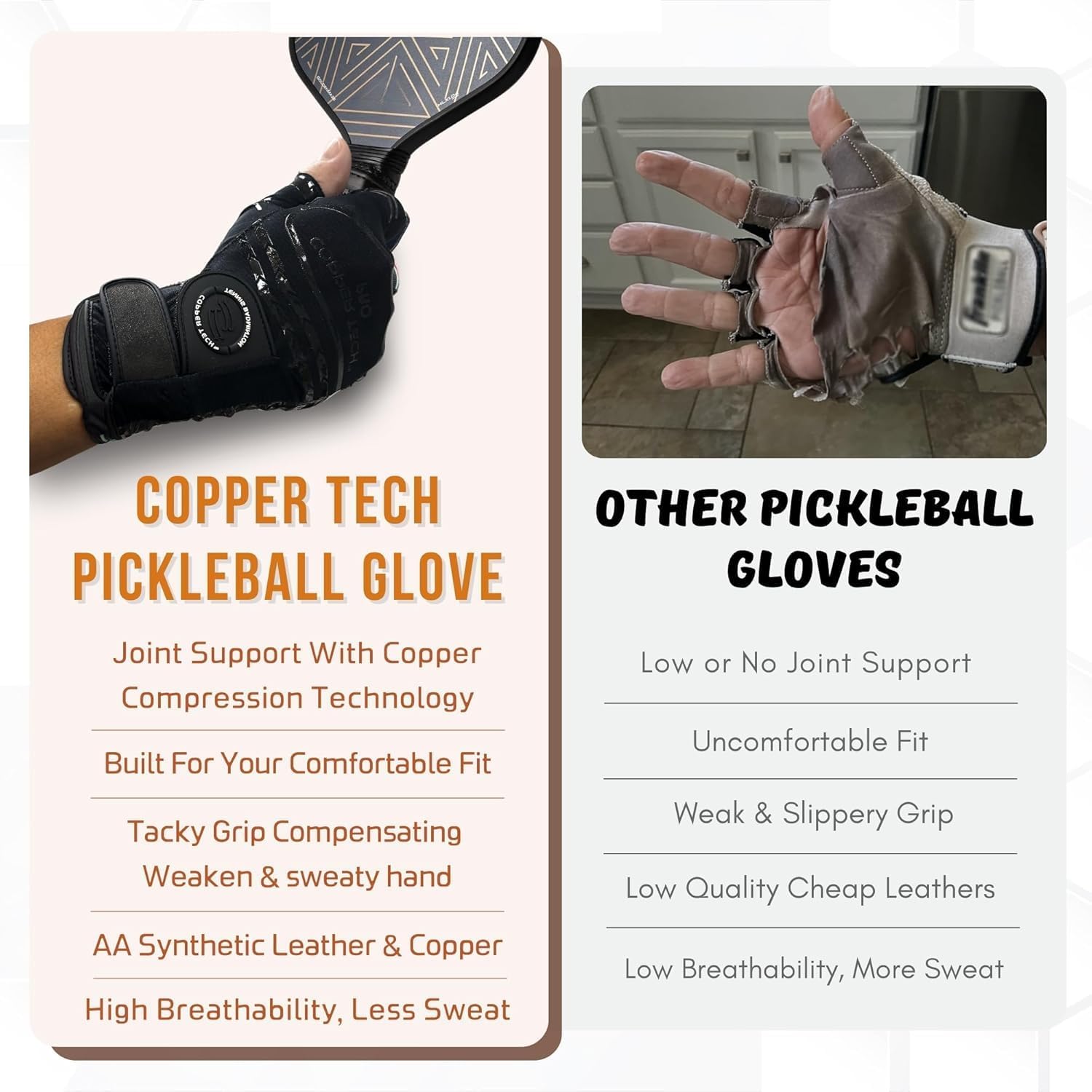 Copper Tech Pro Pickleball Gloves for Men & Women | Advanced Joint Support with Copper Compression | Built with AAA Synthetic Leather Tennis, Badminton, & Racquetball Glove