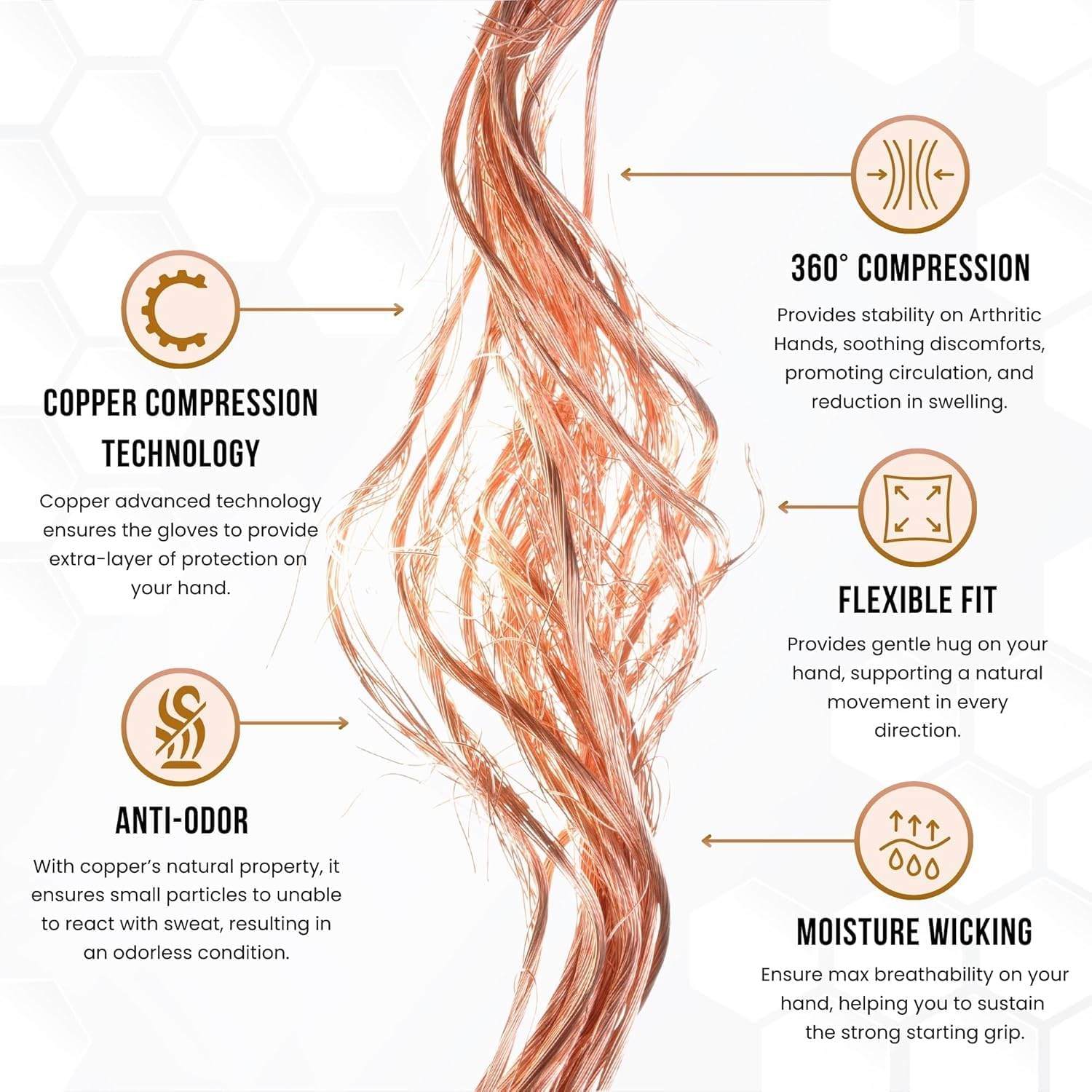 - [ADVANCED COPPER COMPRESSION] - With our technology, copper tech racquetball glove provide you with the compression you need help reducing swelling and pressure, increase blood flow, and support joint & muscle stiffness & soreness while golfing.